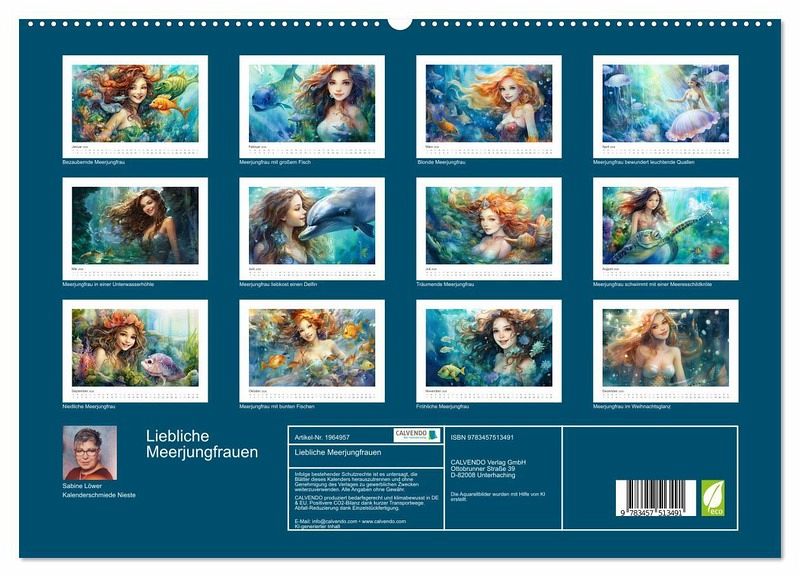 Ein junges Mädchen, halb Mensch, halb Fisch - so stellen sich die meisten Menschen eine Meerjungfrau vor. Meermenschen, die unter Wasser leben oder gar einen Fischschwanz haben, gibt es nicht wirklich. Sie sind Fabelwesen aus dem Reich der Sagen und Märchen. Die farbenfrohen Bilder dieses Kinderkalenders hat die Autorin mit Hilfe von KI erstellt. Ein tolles Geschenk für Meerjungfrauenfans und eine Dekoration für jedes Kinderzimmer.