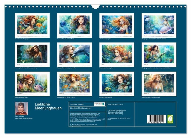 QUALITÄT - Hochwertiger Fotokalender mit 12 wunderschönen Motiven auf lichtbeständigem Bilderdruckpapier, robuste Spiralbindung mit Aufhängebügel.NACHHALTIG - deutliche Abfallreduzierung durch bedarfsgerechte Einzelstückfertigung, umweltfreundliches FSC-zertifiziertes Papier, Produktion in Deutschland, klimabewusste Logistik.PERFEKTES GESCHENK - Kalender für Freunde und Familie, für Kinder und Erwachsene, jung und alt, zu Weihnachten, Geburtstag oder zwischendurch.VIELFALT - Bildkalender in verschiedenen Formaten, z.B. DIN A5, DIN A4, DIN A3 sowie DIN A2. Ob Naturmotiv, Gemälde oder Fotos, ideal für ein persönliches Wohlfühlambiente.Zauberhafte Wesen in ihrer Unterwasserwunderwelt von Autor(in): Sabine Löwer