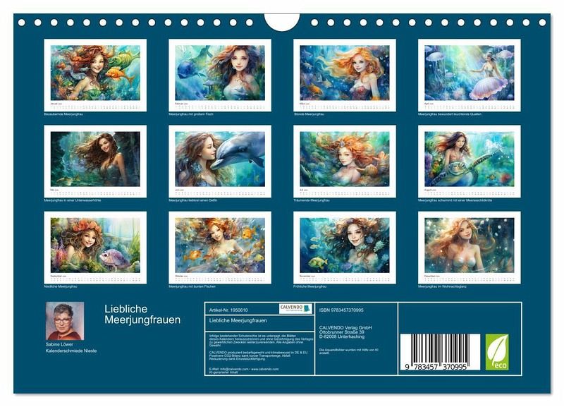 QUALITÄT - Hochwertiger Fotokalender mit 12 wunderschönen Motiven auf lichtbeständigem Bilderdruckpapier, robuste Spiralbindung mit Aufhängebügel.NACHHALTIG - deutliche Abfallreduzierung durch bedarfsgerechte Einzelstückfertigung, umweltfreundliches FSC-zertifiziertes Papier, Produktion in Deutschland, klimabewusste Logistik.PERFEKTES GESCHENK - Kalender für Freunde und Familie, für Kinder und Erwachsene, jung und alt, zu Weihnachten, Geburtstag oder zwischendurch.VIELFALT - Bildkalender in verschiedenen Formaten, z.B. DIN A5, DIN A4, DIN A3 sowie DIN A2. Ob Naturmotiv, Gemälde oder Fotos, ideal für ein persönliches Wohlfühlambiente.Zauberhafte Wesen in ihrer Unterwasserwunderwelt von Autor(in): Sabine Löwer