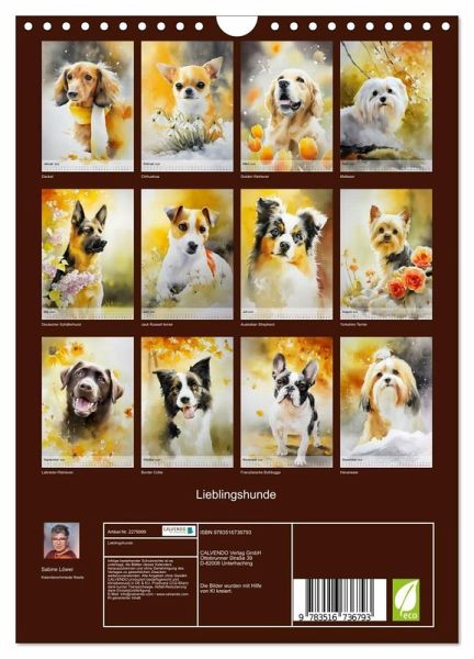QUALITÄT - Hochwertiger Fotokalender mit 12 wunderschönen Motiven auf lichtbeständigem Bilderdruckpapier, robuste Spiralbindung mit Aufhängebügel.NACHHALTIG - deutliche Abfallreduzierung durch bedarfsgerechte Einzelstückfertigung, umweltfreundliches FSC-zertifiziertes Papier, Produktion in Deutschland, klimabewusste Logistik.PERFEKTES GESCHENK - Kalender für Freunde und Familie, für Kinder und Erwachsene, jung und alt, zu Weihnachten, Geburtstag oder zwischendurch.VIELFALT - Bildkalender in verschiedenen Formaten, z.B. DIN A5, DIN A4, DIN A3 sowie DIN A2. Ob Naturmotiv, Gemälde oder Fotos, ideal für ein persönliches Wohlfühlambiente.Die besten Freunde des Menschen in Aquarell von Autor(in): Sabine Löwer