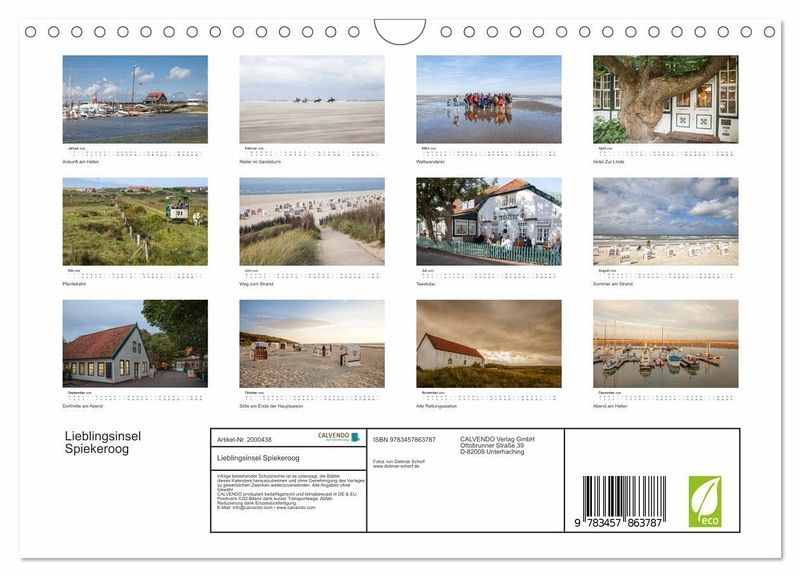 Zwölf wunderschöne Fotografien von der Lieblingsinsel vieler Nordseefans. Profifotograf Dietmar Scherf zeigt in diesem Kalender außergewöhnliche Ansichten bekannter Highlights und Alltagsszenen von Spiekeroog. Dabei wird die Stimmung der Insel lebendig, die vor allem von Weite, Ruhe und entspanntem Durchatmen geprägt ist.