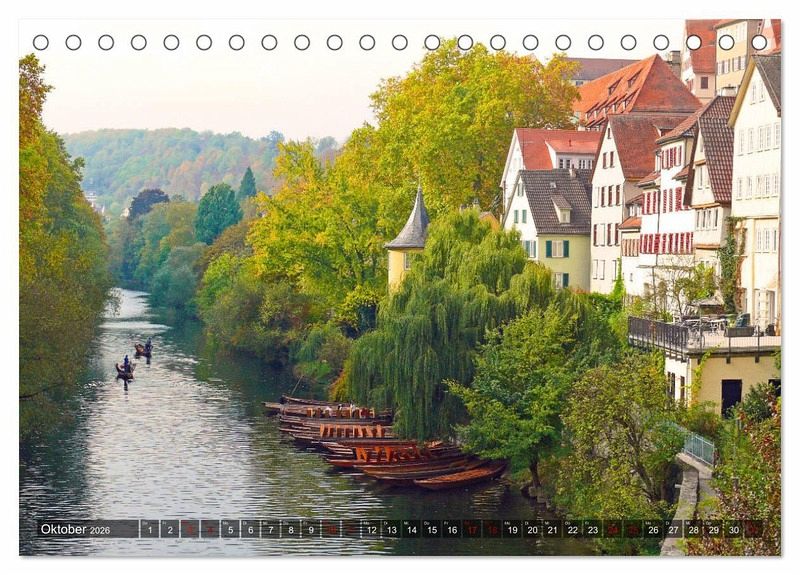 Oktober: Tübinger Neckarfront mit Stocherkähnen im Herbst