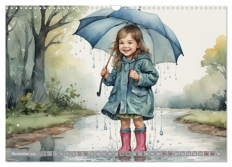 Alle lieben Kinder! Dieser künstlerische Kalender zeigt zeigt die fröhlichen Momente, mal mit mal ohne ihr Lieblingstier, in romantischen Aquarellgemälden, die mit Hilfe von KI umgesetzt wurden.