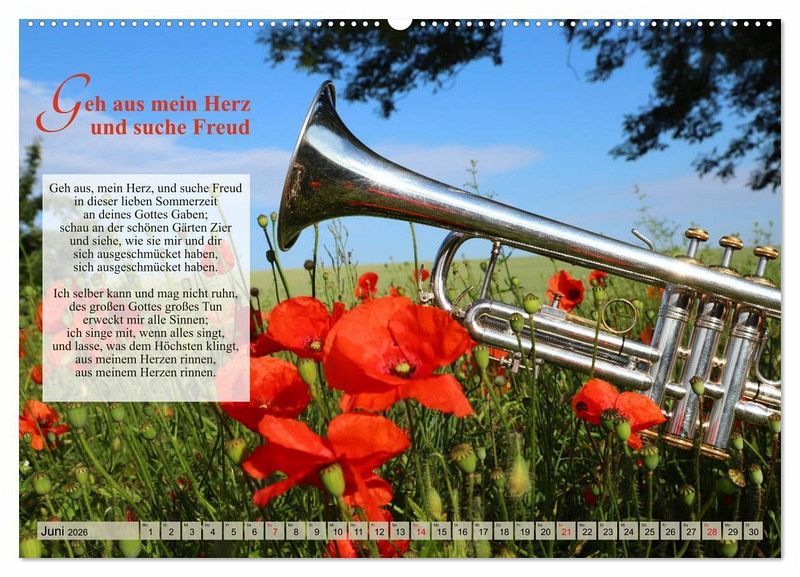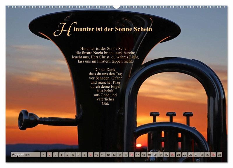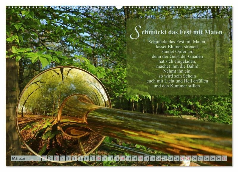 Entdecken Sie den Glanz der Blechblasinstrumente in der freien Natur. Ausgewählte Liedtexte begleiten Sie das ganze Jahr über mit passenden Motiven.