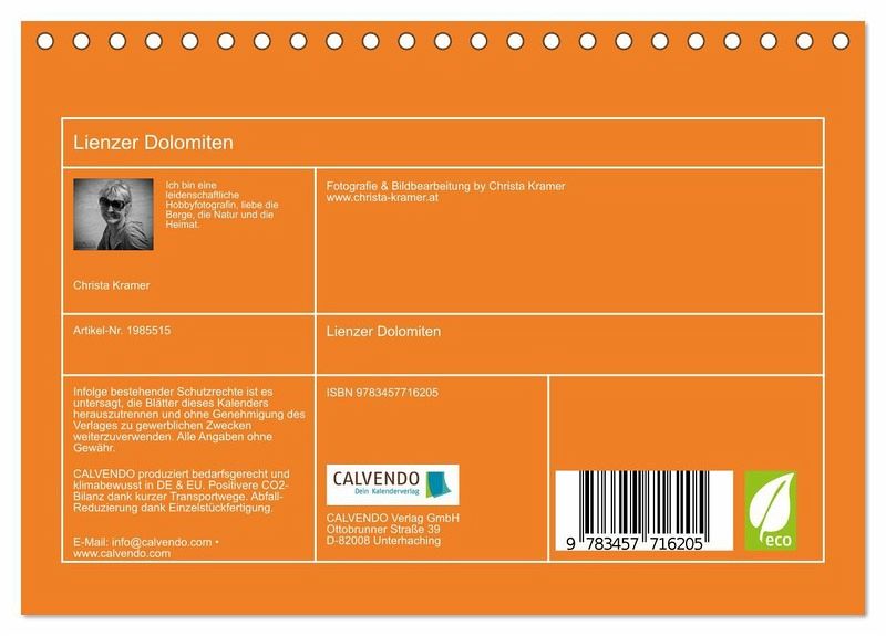 QUALITÄT - Hochwertiger Fotokalender mit 12 wunderschönen Motiven auf lichtbeständigem Bilderdruckpapier, robuste Spiralbindung.NACHHALTIG - deutliche Abfallreduzierung durch bedarfsgerechte Einzelstückfertigung, umweltfreundliches FSC-zertifiziertes Papier, Produktion in Deutschland, klimabewusste Logistik.PERFEKTES GESCHENK - Kalender für Freunde und Familie, für Kinder und Erwachsene, jung und alt, zu Weihnachten, Geburtstag oder zwischendurch.VIELFALT - Bildkalender in verschiedenen Formaten, z.B. DIN A5, DIN A4, DIN A3 sowie DIN A2. Ob Naturmotiv, Gemälde oder Fotos, ideal für ein persönliches Wohlfühlambiente.Impressionen der Lienzer Dolomiten in Osttirol von Autor(in): Christa Kramer