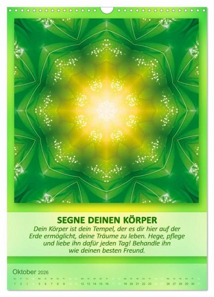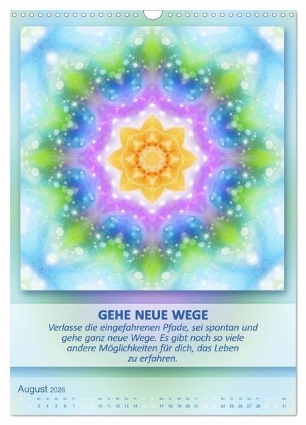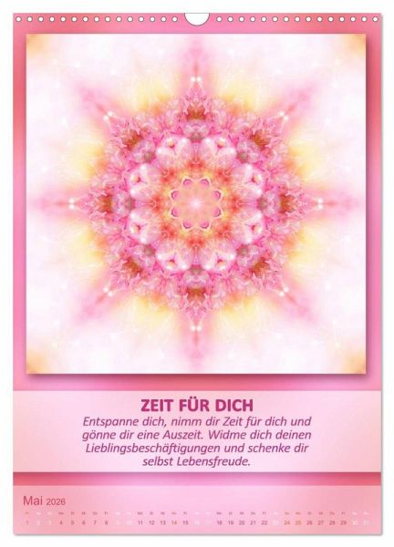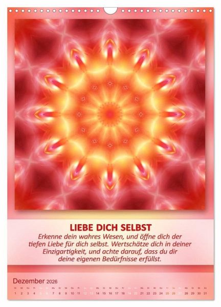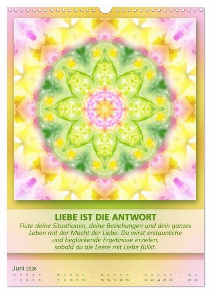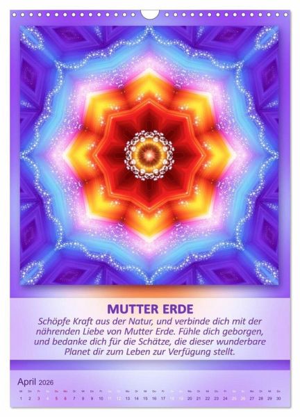 Dieser farbenfrohe und positiv ausgerichtete Mandala-Kalender inspiriert seinen Betrachter dazu, sein Leben für Liebe, Glück und Freude zu öffnen. Er erhält ein Gespür, dass er ein Teil des großen Ganzen ist, das ihn beschützt und Geborgenheit vermittelt. Unsere Seele möchte, dass wir uns an uns selbst erinnern, an den Kern unseres Wesens, der bezaubernd, einzigartig und so unendlich liebenswert ist. Das gilt für jeden von uns.