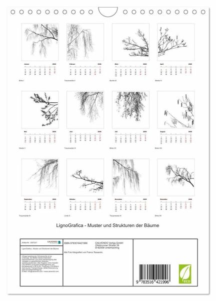 QUALITÄT - Hochwertiger Fotokalender mit 12 wunderschönen Motiven auf lichtbeständigem Bilderdruckpapier, robuste Spiralbindung mit Aufhängebügel.NACHHALTIG - deutliche Abfallreduzierung durch bedarfsgerechte Einzelstückfertigung, umweltfreundliches FSC-zertifiziertes Papier, Produktion in Deutschland, klimabewusste Logistik.PERFEKTES GESCHENK - Kalender für Freunde und Familie, für Kinder und Erwachsene, jung und alt, zu Weihnachten, Geburtstag oder zwischendurch.VIELFALT - Bildkalender in verschiedenen Formaten, z.B. DIN A5, DIN A4, DIN A3 sowie DIN A2. Ob Naturmotiv, Gemälde oder Fotos, ideal für ein persönliches Wohlfühlambiente.Bäume, grafische Schönheit der Natur. von Autor(in): Franco Tessarolo