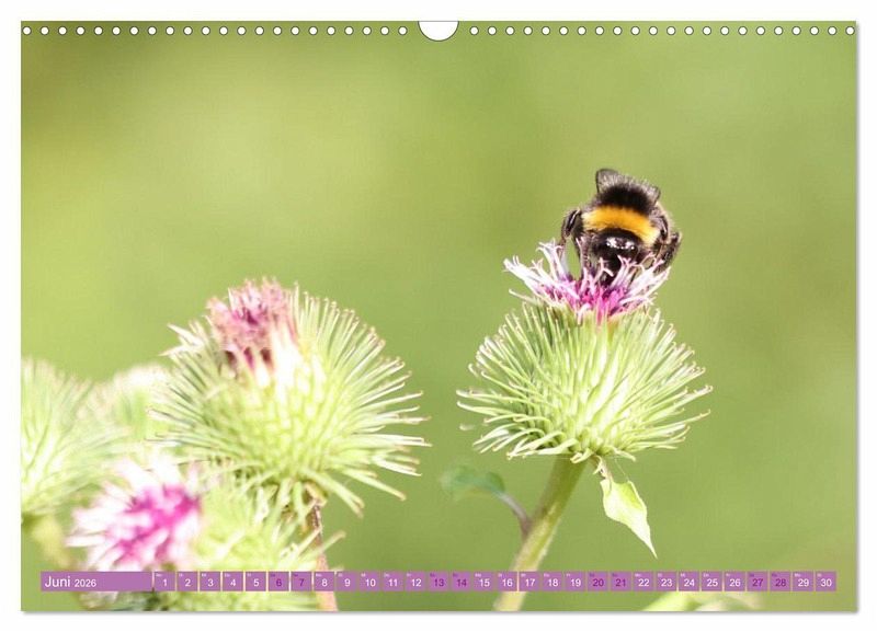 Dieser exklusive Kalender nimmt Sie mit auf eine faszinierende Reise durch das Jahr. Lassen Sie sich jeden Monat von der sanften Eleganz der lila Blüten verzaubern, begleitet von ihren Besuchern, die diese prächtigen Blumen bevölkern. Ob der majestätische Schmetterling auf einer Wiesen-Flockenblume im Mai oder die fleißigen Bienen, die im September auf einer Distel summen - dieser Kalender fängt die harmonische Verbindung zwischen Blüten und ihren geflügelten Gästen perfekt ein.