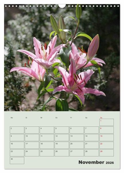 Lilien haben auffallend schöne Blüten und einen betörenden Duft. Es gibt über 100 Arten und noch viel mehr Züchtungen - also die Auswahl ist riesengroß. Lilienliebhaber können mit ein bischen Knowhow von Mai bis September Freude an der Blütenpracht haben. Dieser Kalender mit seinen frischen, leuchtenden Fotografien ermöglicht Ihnen ungetrübten Liliengenuss für das ganze Jahr.