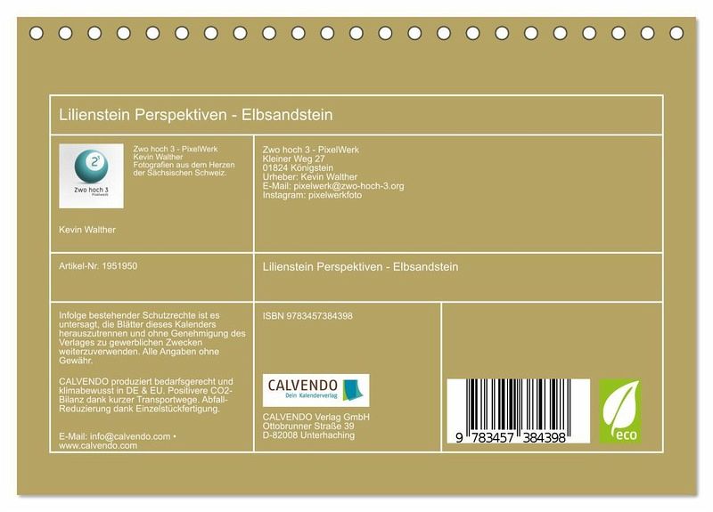 QUALITÄT - Hochwertiger Fotokalender mit 12 wunderschönen Motiven auf lichtbeständigem Bilderdruckpapier, robuste Spiralbindung.NACHHALTIG - deutliche Abfallreduzierung durch bedarfsgerechte Einzelstückfertigung, umweltfreundliches FSC-zertifiziertes Papier, Produktion in Deutschland, klimabewusste Logistik.PERFEKTES GESCHENK - Kalender für Freunde und Familie, für Kinder und Erwachsene, jung und alt, zu Weihnachten, Geburtstag oder zwischendurch.VIELFALT - Bildkalender in verschiedenen Formaten, z.B. DIN A5, DIN A4, DIN A3 sowie DIN A2. Ob Naturmotiv, Gemälde oder Fotos, ideal für ein persönliches Wohlfühlambiente.Der Lilienstein von nah und fern. von Autor(in): Pixelwerk
