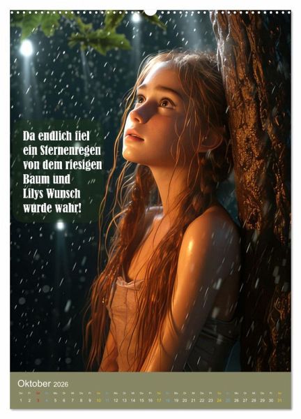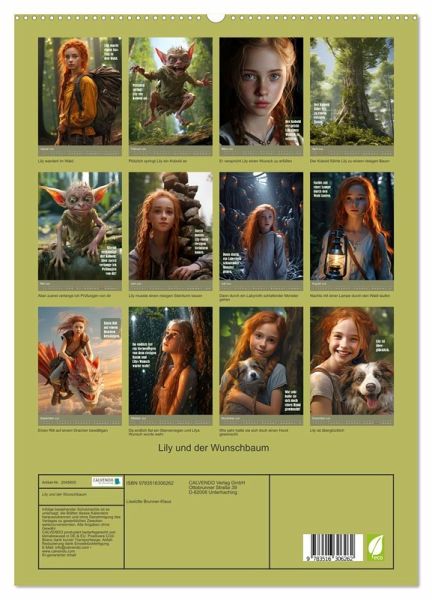 Entdecke die zauberhafte Welt von Lily und dem Wunschbaum in unserem einzigartigen Kalender. Begleite Lily auf ihrer abenteuerlichen Reise voller Prüfungen und magischer Momente.Tauche ein in die fabelhafte Geschichte der tapferen Lily, die auf einen geheimnisvollen Kobold trifft. Dieser Kobold bietet ihr an, einen Wunsch zu erfüllen, doch zuvor muss Lily sich beweisen. Gemeinsam begeben sie sich zum legendären Wunschbaum, dies ist ein magischer Ort, der jeden Wunsch wahr werden lassen kann.Auf ihrer fantastischen Reise muss Lily zahlreiche Prüfungen meistern. Als Lily schließlich die letzte Prüfung besteht, entfaltet der Wunschbaum seine magische Kraft. Ein funkelnder Sternenregen rieselt sanft auf Lily herab, und in diesem Moment darf sie sich einen Wunsch erfüllen. Und welchen Wunsch hat Lily? Erfahrt es in der Geschichte.Lasse dich von den wunderschönen Illustrationen verzaubern und begib dich auf jede Seite unseres Kalenders auf eine neue Reise voller Fantasie und Freundschaft. Die liebevoll gestalteten und mit Hilfe der KI erstellten Bilder und die spannende Geschichte von Lily und dem Wunschbaum werden dich jeden Monat aufs Neue begeistern.