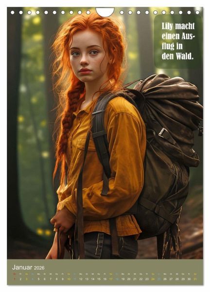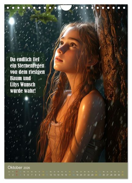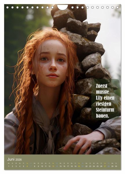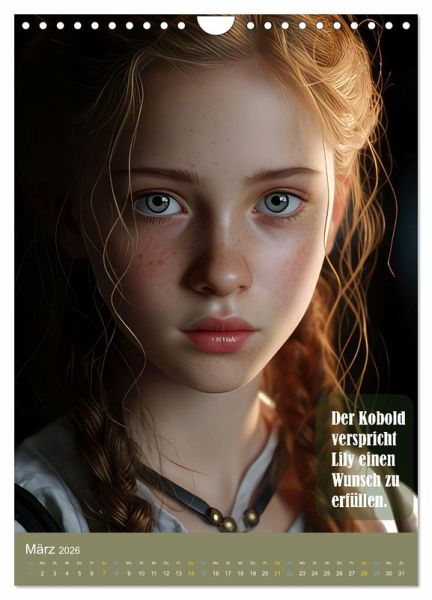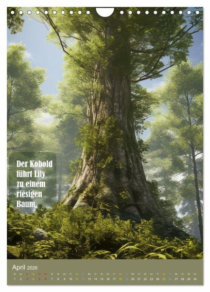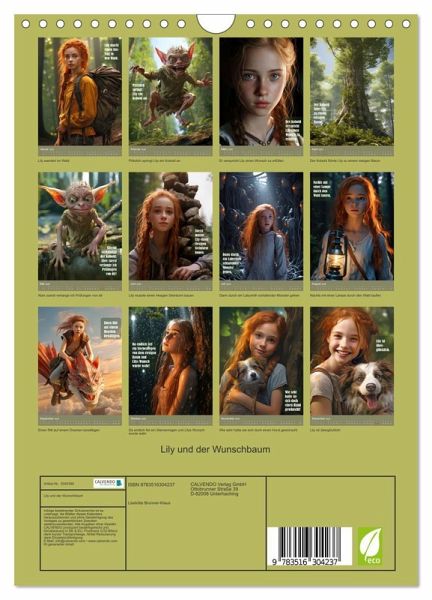 Entdecke die zauberhafte Welt von Lily und dem Wunschbaum in unserem einzigartigen Kalender. Begleite Lily auf ihrer abenteuerlichen Reise voller Prüfungen und magischer Momente.Tauche ein in die fabelhafte Geschichte der tapferen Lily, die auf einen geheimnisvollen Kobold trifft. Dieser Kobold bietet ihr an, einen Wunsch zu erfüllen, doch zuvor muss Lily sich beweisen. Gemeinsam begeben sie sich zum legendären Wunschbaum, dies ist ein magischer Ort, der jeden Wunsch wahr werden lassen kann.Auf ihrer fantastischen Reise muss Lily zahlreiche Prüfungen meistern. Als Lily schließlich die letzte Prüfung besteht, entfaltet der Wunschbaum seine magische Kraft. Ein funkelnder Sternenregen rieselt sanft auf Lily herab, und in diesem Moment darf sie sich einen Wunsch erfüllen. Und welchen Wunsch hat Lily? Erfahrt es in der Geschichte.Lasse dich von den wunderschönen Illustrationen verzaubern und begib dich auf jede Seite unseres Kalenders auf eine neue Reise voller Fantasie und Freundschaft. Die liebevoll gestalteten und mit Hilfe der KI erstellten Bilder und die spannende Geschichte von Lily und dem Wunschbaum werden dich jeden Monat aufs Neue begeistern.