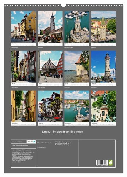 Lindau ist schon allein durch seine Lage auf einer Insel sehenswert. Aber die kleine Stadt hat weit mehr zu bieten als seine außergewöhnliche Lage. Dieser Kalender zeigt einige Impressionen des Ortes und möchte Lust machen ihn selbst einmal zu besuchen.