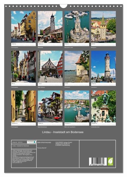 Lindau ist schon allein durch seine Lage auf einer Insel sehenswert. Aber die kleine Stadt hat weit mehr zu bieten als seine außergewöhnliche Lage. Dieser Kalender zeigt einige Impressionen des Ortes und möchte Lust machen ihn selbst einmal zu besuchen.