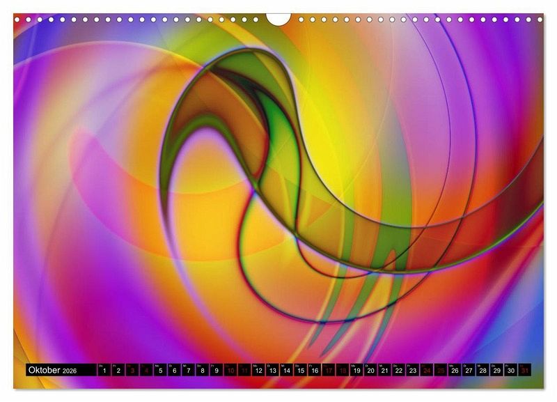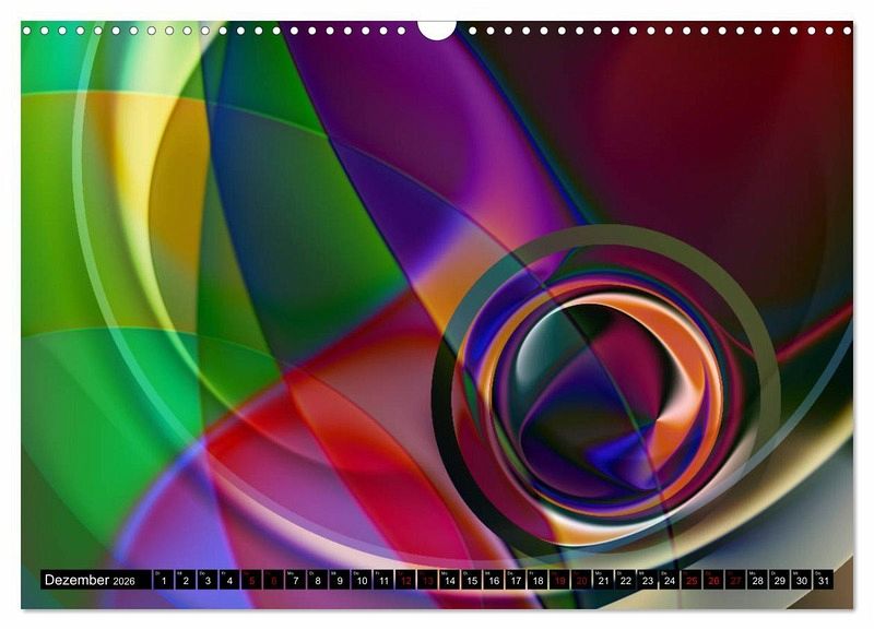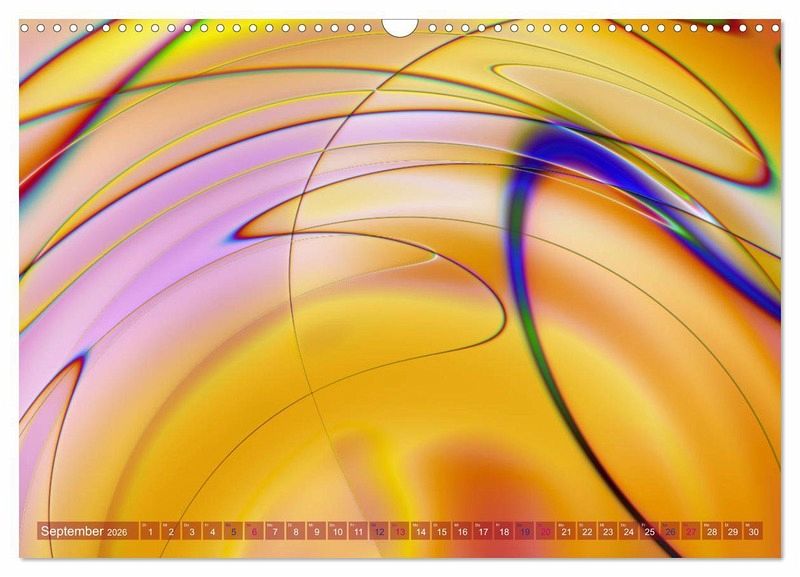Digitale Formensprache die durch Leuchtkraft und Klarheit besticht. Licht, Schatten und Überblendungen lassen andersartige Sichtweisen zu. Ein farbharmonischer Kalender für den modernen Wohnraum.