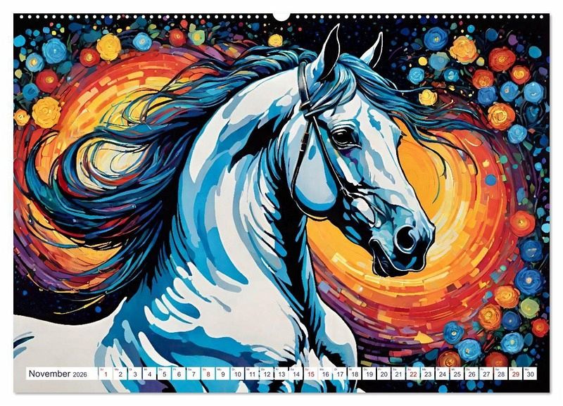 Lipizzaner sind berühmt für ihre Eleganz und Wendigkeit in der klassischen Dressur. Die aus dem heutigen Slowenien stammende Pferderasse ist beeindruckend schön, so wie auch die Bilder dieses Kalenders, die Steffani Lehmann mit Unterstützung einer KI editiert hat.