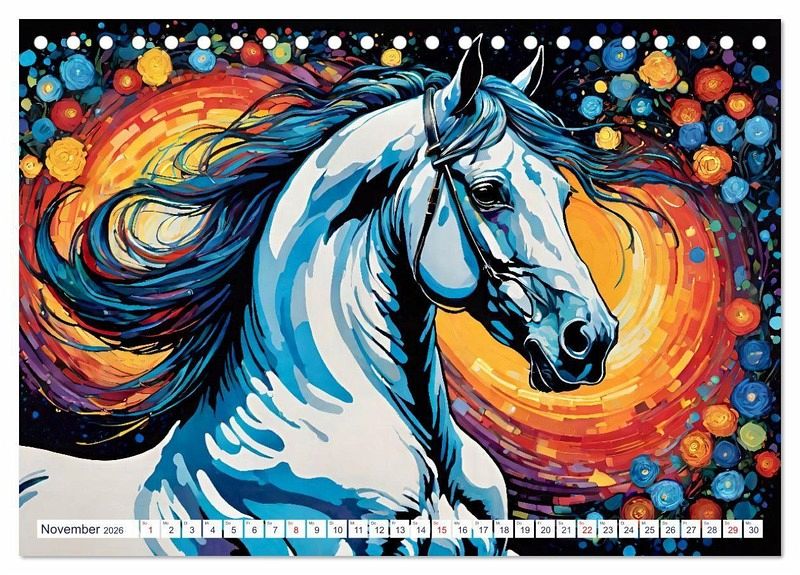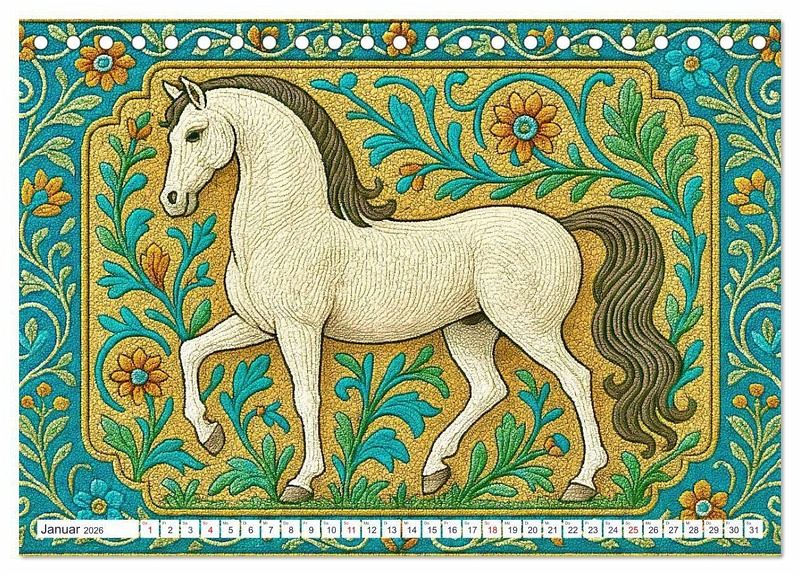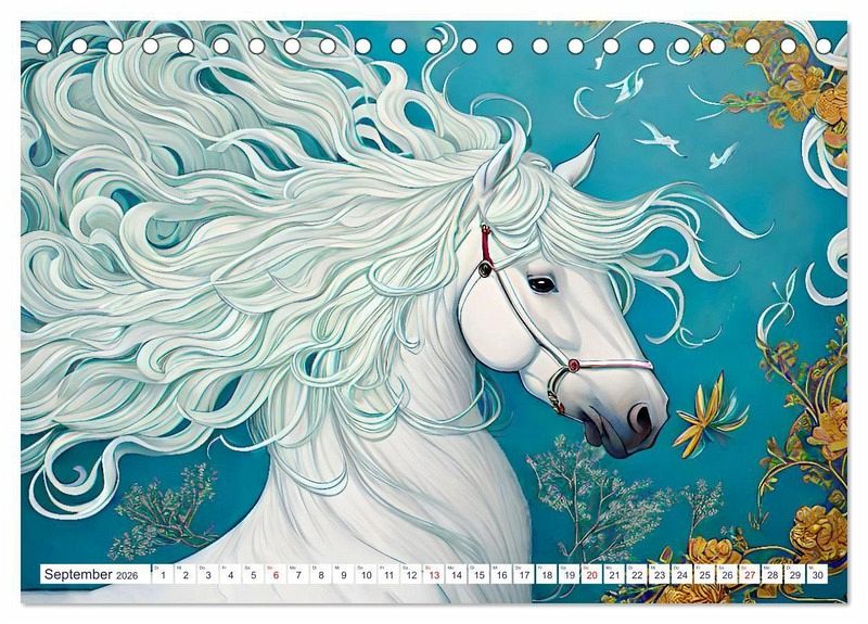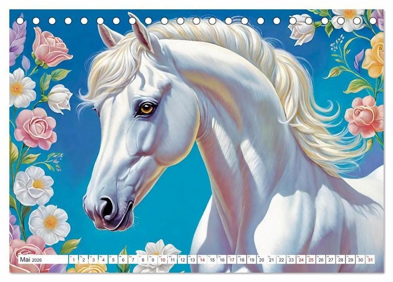 Lipizzaner sind berühmt für ihre Eleganz und Wendigkeit in der klassischen Dressur. Die aus dem heutigen Slowenien stammende Pferderasse ist beeindruckend schön, so wie auch die Bilder dieses Kalenders, die Steffani Lehmann mit Unterstützung einer KI editiert hat.