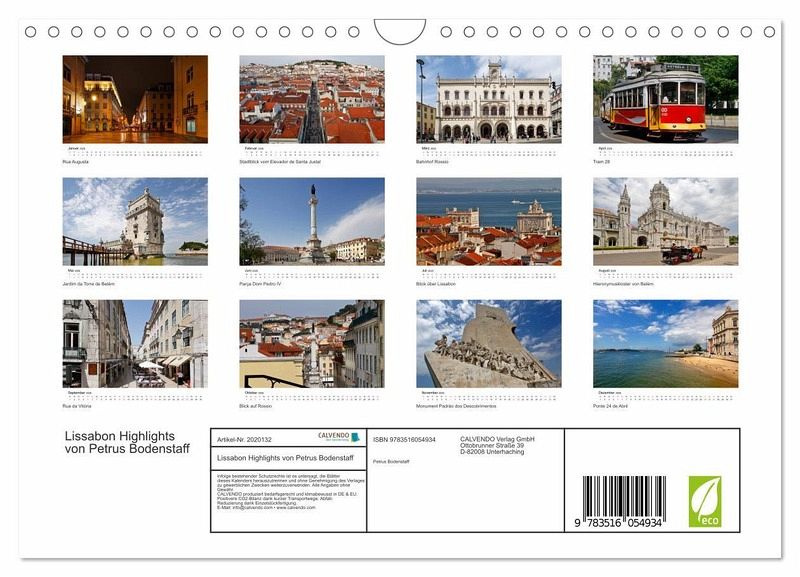 QUALITÄT - Hochwertiger Fotokalender mit 12 wunderschönen Motiven auf lichtbeständigem Bilderdruckpapier, robuste Spiralbindung mit Aufhängebügel.NACHHALTIG - deutliche Abfallreduzierung durch bedarfsgerechte Einzelstückfertigung, umweltfreundliches FSC-zertifiziertes Papier, Produktion in Deutschland, klimabewusste Logistik.PERFEKTES GESCHENK - Kalender für Freunde und Familie, für Kinder und Erwachsene, jung und alt, zu Weihnachten, Geburtstag oder zwischendurch.VIELFALT - Bildkalender in verschiedenen Formaten, z.B. DIN A5, DIN A4, DIN A3 sowie DIN A2. Ob Naturmotiv, Gemälde oder Fotos, ideal für ein persönliches Wohlfühlambiente.Lissabon Highlights einer 5 Tage Reise nach Lissabon von Autor(in): Petrus Bodenstaff