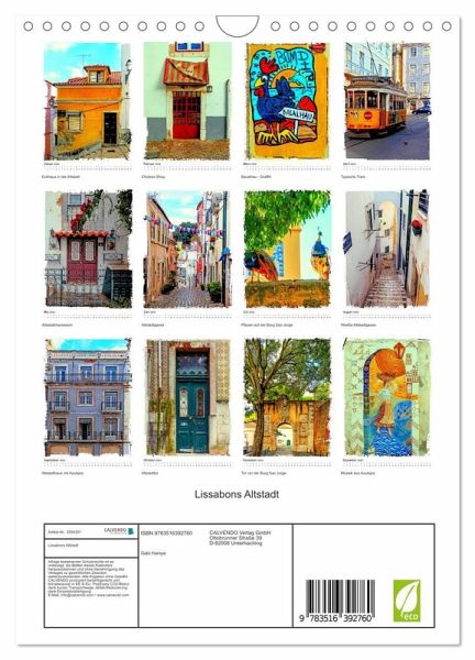 QUALITÄT - Hochwertiger Fotokalender mit 12 wunderschönen Motiven auf lichtbeständigem Bilderdruckpapier, robuste Spiralbindung mit Aufhängebügel.NACHHALTIG - deutliche Abfallreduzierung durch bedarfsgerechte Einzelstückfertigung, umweltfreundliches FSC-zertifiziertes Papier, Produktion in Deutschland, klimabewusste Logistik.PERFEKTES GESCHENK - Kalender für Freunde und Familie, für Kinder und Erwachsene, jung und alt, zu Weihnachten, Geburtstag oder zwischendurch.VIELFALT - Bildkalender in verschiedenen Formaten, z.B. DIN A5, DIN A4, DIN A3 sowie DIN A2. Ob Naturmotiv, Gemälde oder Fotos, ideal für ein persönliches Wohlfühlambiente.Einblicke in Lissabons Altstadt von Autor(in): Gabi Hampe