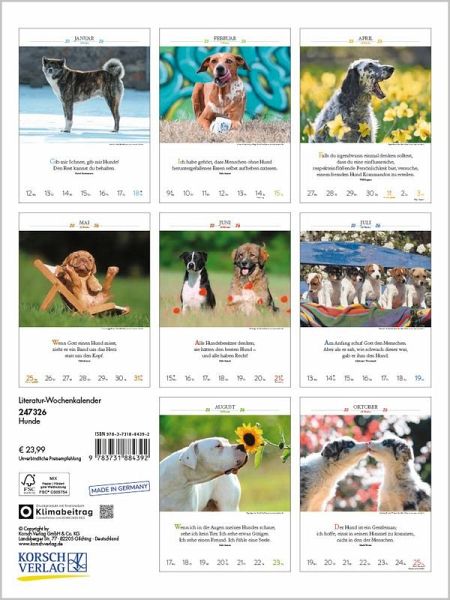 Außergewöhnliche Fotos von Hundepersönlichkeiten, kombiniert mit klugen Gedanken, sind Woche für Woche ein Vergnügen für alle, die Hunde lieben. Klimaneutral hergestellt auf nachhaltig produziertem Papier.
