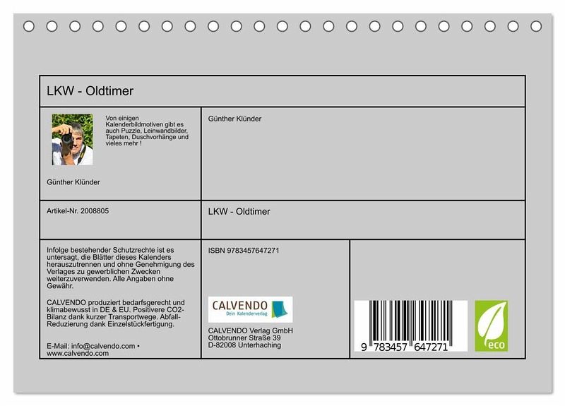 QUALITÄT - Hochwertiger Fotokalender mit 12 wunderschönen Motiven auf lichtbeständigem Bilderdruckpapier, robuste Spiralbindung.NACHHALTIG - deutliche Abfallreduzierung durch bedarfsgerechte Einzelstückfertigung, umweltfreundliches FSC-zertifiziertes Papier, Produktion in Deutschland, klimabewusste Logistik.PERFEKTES GESCHENK - Kalender für Freunde und Familie, für Kinder und Erwachsene, jung und alt, zu Weihnachten, Geburtstag oder zwischendurch.VIELFALT - Bildkalender in verschiedenen Formaten, z.B. DIN A5, DIN A4, DIN A3 sowie DIN A2. Ob Naturmotiv, Gemälde oder Fotos, ideal für ein persönliches Wohlfühlambiente.Hier kommen Liebhaber alter LKW voll auf ihre Kosten. von Autor(in): Günther Klünder