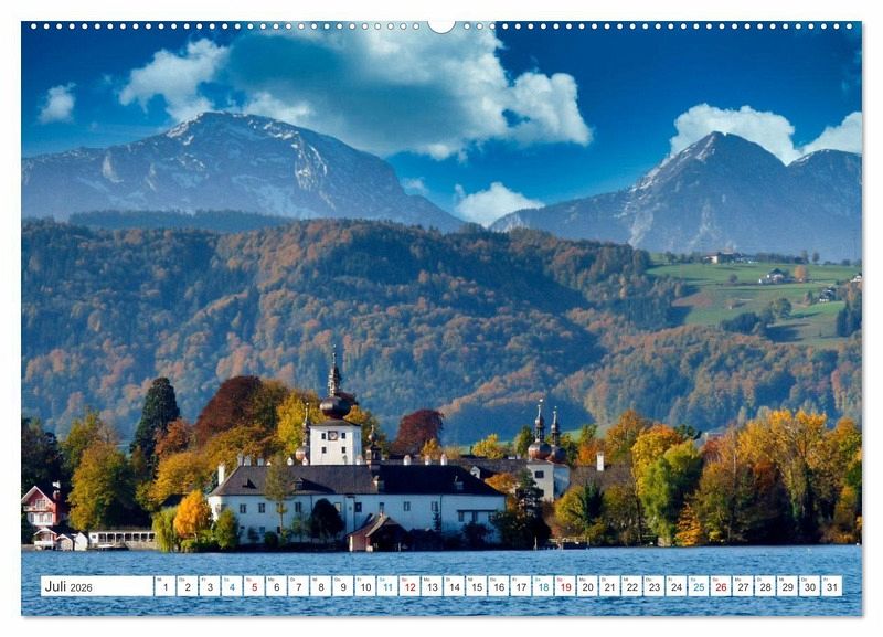 Juli: Gmunden, Schloss Orth vor imposanter Gebirgskulisse