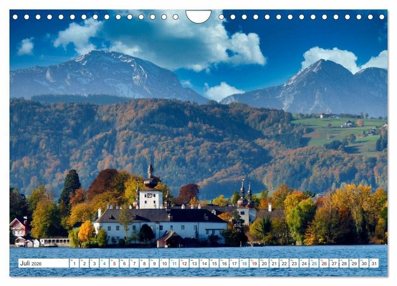 Juli: Gmunden, Schloss Orth vor imposanter Gebirgskulisse