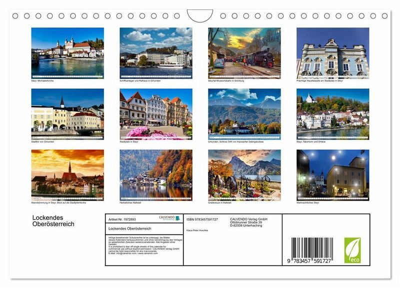 QUALITÄT - Hochwertiger Fotokalender mit 12 wunderschönen Motiven auf lichtbeständigem Bilderdruckpapier, robuste Spiralbindung mit Aufhängebügel.NACHHALTIG - deutliche Abfallreduzierung durch bedarfsgerechte Einzelstückfertigung, umweltfreundliches FSC-zertifiziertes Papier, Produktion in Deutschland, klimabewusste Logistik.PERFEKTES GESCHENK - Kalender für Freunde und Familie, für Kinder und Erwachsene, jung und alt, zu Weihnachten, Geburtstag oder zwischendurch.VIELFALT - Bildkalender in verschiedenen Formaten, z.B. DIN A5, DIN A4, DIN A3 sowie DIN A2. Ob Naturmotiv, Gemälde oder Fotos, ideal für ein persönliches Wohlfühlambiente.Attraktive Highlights in Oberösterreich von Autor(in): Peter Huschka