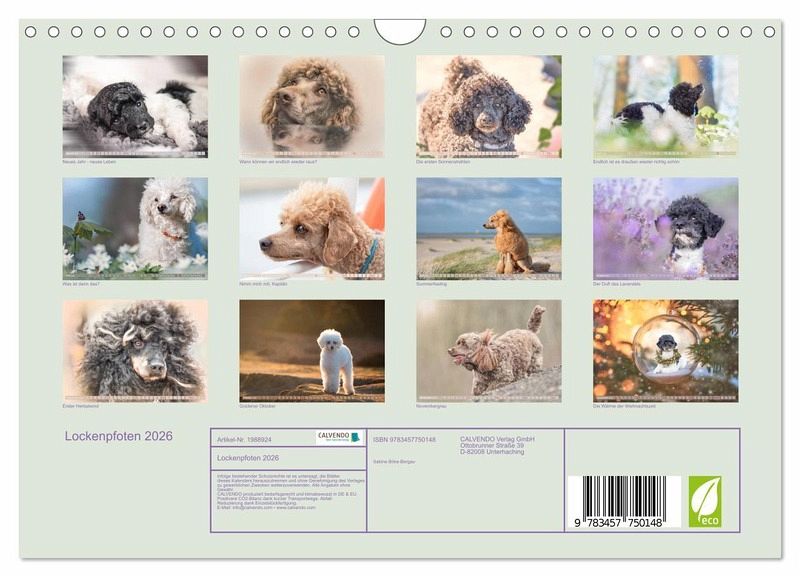 QUALITÄT - Hochwertiger Fotokalender mit 12 wunderschönen Motiven auf lichtbeständigem Bilderdruckpapier, robuste Spiralbindung mit Aufhängebügel.NACHHALTIG - deutliche Abfallreduzierung durch bedarfsgerechte Einzelstückfertigung, umweltfreundliches FSC-zertifiziertes Papier, Produktion in Deutschland, klimabewusste Logistik.PERFEKTES GESCHENK - Kalender für Freunde und Familie, für Kinder und Erwachsene, jung und alt, zu Weihnachten, Geburtstag oder zwischendurch.VIELFALT - Bildkalender in verschiedenen Formaten, z.B. DIN A5, DIN A4, DIN A3 sowie DIN A2. Ob Naturmotiv, Gemälde oder Fotos, ideal für ein persönliches Wohlfühlambiente.Wunderschöne Pudelfotos begleiten Hundefans durch das Jahr 2020 von Autor(in): boegau