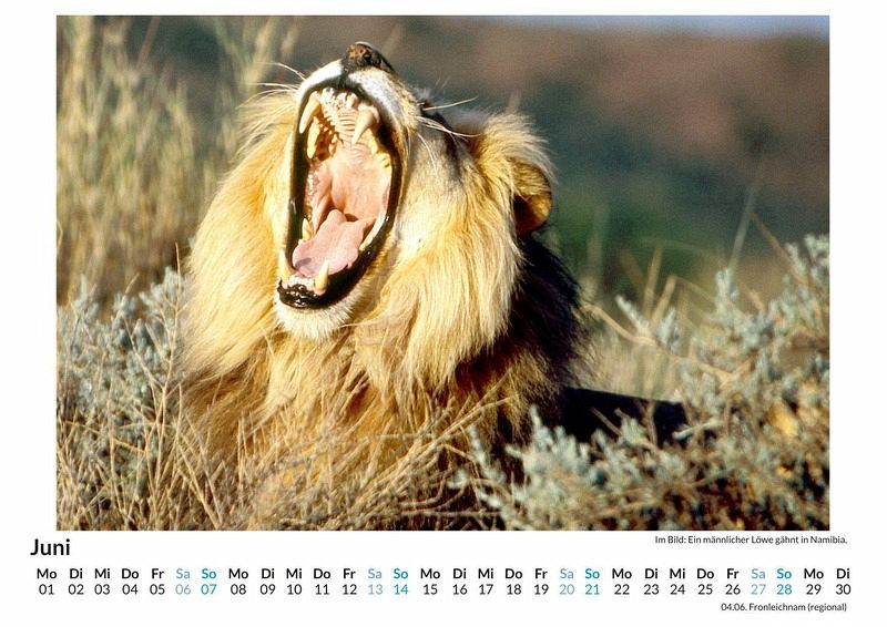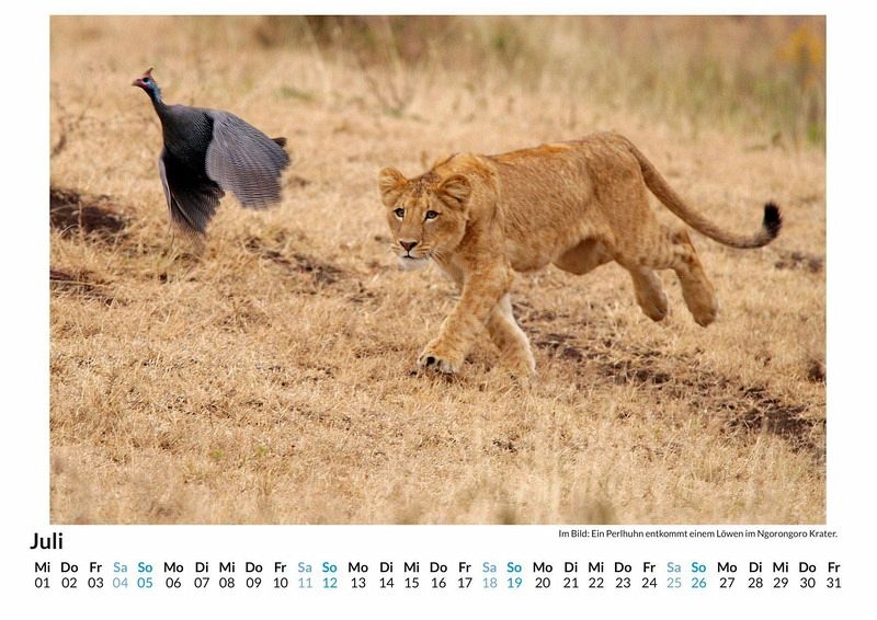 Entdecken Sie die majestätische Schönheit der Löwen Afrikas mit unserem exklusiven Wandkalender! Jeder Monat bringt Sie mit 12 atemberaubenden Motiven diesen faszinierenden Raubkatzen näher. Gedruckt auf hochwertigem, lichtbeständigem Bilderdruckpapier, kommen die kraftvollen Bilder perfekt zur Geltung und verleihen jedem Raum eine besondere Atmosphäre. Nachhaltigkeit liegt uns am Herzen: Der Kalender wird in Deutschland auf FSC-zertifiziertem Papier produziert. Gönnen Sie sich oder Ihren Liebsten ein Stück afrikanische Wildnis - ideal als Geschenk oder für Ihr Zuhause. Holen Sie sich jetzt die Könige der Savanne an Ihre Wand! Hochwertig Erleben Sie ein Jahr voller Eleganz mit unserem Premium-Fotokalender. Jedes der 12 Motive ist auf hochwertigem, lichtbeständigem Bilderdruckpapier gedruckt, um die Lebendigkeit jedes Bildes zu bewahren. Die robuste Spiralbindung gewährleistet Langlebigkeit und einfache Handhabung. Nachhaltig Unser Engagement für die Umwelt spiegelt sich in jedem Exemplar wider. Durch die Produktion auf Abruf reduzieren wir signifikant unseren Abfall. Wir verwenden ausschließlich umweltfreundliches, FSC-zertifiziertes Papier. Stolz gefertigt in Deutschland, achten wir bei unserer Logistik auf Klimaschutz, um unseren ökologischen Fußabdruck zu minimieren. Das ideale Geschenk Dieser Kalender ist das perfekte Präsent für jeden Anlass - ob Weihnachten, Geburtstage oder einfach als liebevolle Aufmerksamkeit zwischendurch. Geeignet für Freunde, Familie, Kinder und Erwachsene gleichermaßen, bereichert er jedes Zuhause mit seiner Vielfalt und Schönheit, unabhängig vom Alter der Beschenkten.