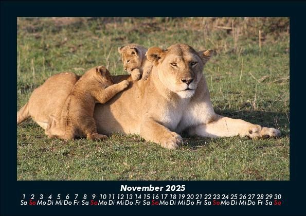 Löwen in der Wildnis 2025 Motivkalender DIN A5 Vero-Kalender erhalten Sie mit Motiven aus den verschiedensten Themenbereichen wie Natur, Blumen und Landschaft, Tierwelt, Architektur, Reise und Urlaub, Technik, Automobil und Eisenbahn, Emotionen, Sport und Musik. Gedruckt werden die Monats-Kalender aus dem Vero Verlag auf hochwertigem Kalenderbogen in Premium-Qualität und verschiedenen Größen. Die Vielfältigkeit der Motive unserer Foto-Kalender ist dank der Zusammenarbeit mit kreativen Fotografen möglich.