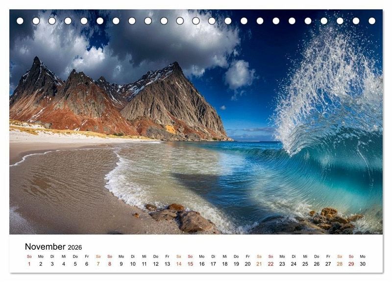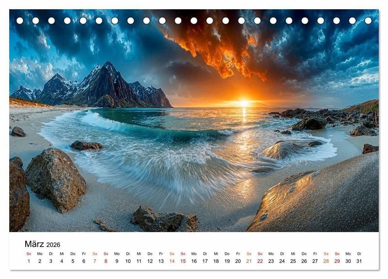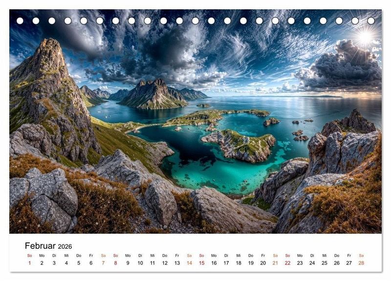 Ein Jahr voller Sehnsucht nach dem Norden, lassen Sie sich Monat für Monat in die faszinierende Welt der Lofoten entführen. Jedes Bild ist ein Fenster in die arktische Schönheit - rau und zugleich poetisch. Mal schweben dramatische Wolkenformationen über den Fjorden, mal glitzern die weißen Strände im klaren Licht, mal schmiegen sich die typischen roten Haussiedlungen an die Küste. Gestaltet mit dem Auge fürs Detail werden diese Bilder zu einer faszinierenden Reise nördlich des Polarkreises, wobei die grafische Umsetzung im Zusammenspiel klassischer Gestaltung und ausgewählter KI-basierter Methoden erfolgte. Ein Kalender für alle, die die Kraft der Natur lieben und sich von nordischen Träumen begleiten lassen möchten.
