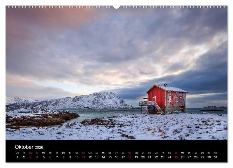 Lassen Sie sich entführen in die wundervolle Inselwelt der Lofoten. Ob beim Sonnenuntergang oder im Schein des Polarlichtes - Norwegen zeigt sich hier mit seinen Fjorden und Bergen von seiner schönsten Seite. 12 beeindruckende Aufnahmen dieses Naturparadieses werden Sie durch das nächste Jahr begleiten.