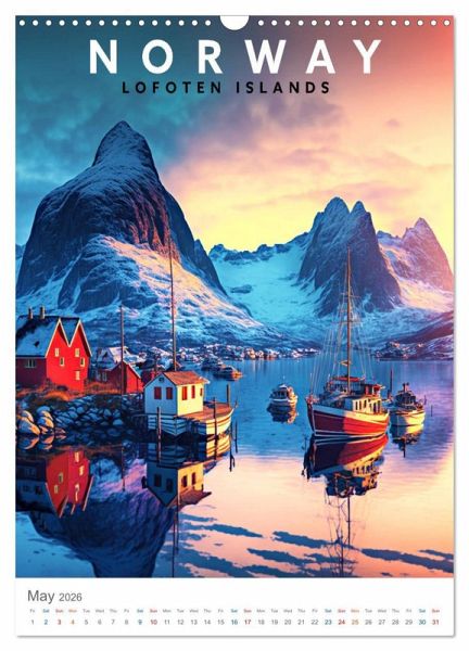 QUALITY - High-quality photo calendar with 12 beautiful images on light-resistant paper, robust spiral binding with hanger.SUSTAINABLE - Significant waste reduction due to print-on-demand production, environmentally friendly FSC-certified paper, produced in the UK, climate-conscious logistical processes.PERFECT GIFT - calendars for friends and family, for children, all ages and all occasions, from Christmas to birthdays and everything in between.LOTS OF CHOICE - Wall calendars in different sizes (DIN A4 and DIN A3), for any topic and personal taste, featuring photography, painting and illustrations.A collection of Norwegian posters in an Old School style, author: Val Thoermer