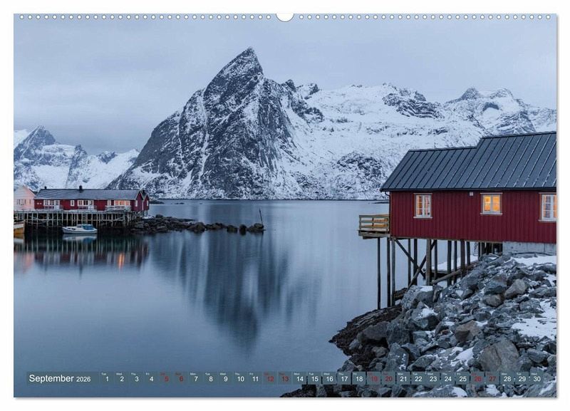 PREMIUM COLLECTION - Brilliant photo calendar with 12 beautiful motifs, high-gloss art print in museum quality.QUALITY - high-quality materials, sturdy back cover with 2 innovative insert pockets for optimum presentation on the wall.SUSTAINABLE - significant reduction in waste thanks to customised one-off production, environmentally friendly FSC-certified paper, production in Germany, climate-conscious logistics.PERFECT GIFT - calendars for friends and family, for children and adults, young and old, for Christmas, birthdays or in between.Majestic mountains, frozen fjords and red, wooden cabins von Autor(in): Joana Kruse