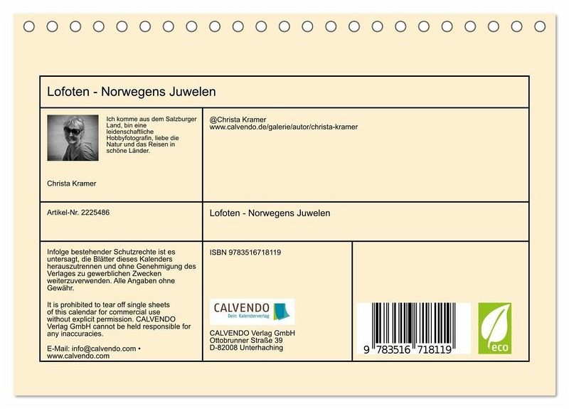 QUALITÄT - Hochwertiger Fotokalender mit 12 wunderschönen Motiven auf lichtbeständigem Bilderdruckpapier, robuste Spiralbindung.NACHHALTIG - deutliche Abfallreduzierung durch bedarfsgerechte Einzelstückfertigung, umweltfreundliches FSC-zertifiziertes Papier, Produktion in Deutschland, klimabewusste Logistik.PERFEKTES GESCHENK - Kalender für Freunde und Familie, für Kinder und Erwachsene, jung und alt, zu Weihnachten, Geburtstag oder zwischendurch.VIELFALT - Bildkalender in verschiedenen Formaten, z.B. DIN A5, DIN A4, DIN A3 sowie DIN A2. Ob Naturmotiv, Gemälde oder Fotos, ideal für ein persönliches Wohlfühlambiente.Eine Reise durch Licht, Farben und unberührter Natur von Autor(in): Christa Kramer