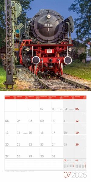 Historische Dampfloks rattern auf Schienen durch die schönsten Landschaften und erinnern an die Anfänge des Reisens. Mit beeindruckender Kraft und Technik überwinden sie Höhen und weite Entfernungen, dabei bringen die Lokomotiven Menschen mit einer Ruhe und Konstanz ans Ziel, die das langsame Fortbewegungsmittel so attraktiv machen. Der Lieblingskalender von Eisenbahn-Fans! Alle Art12-Kalender sind mit einem Jahresplaner ausgestattet.