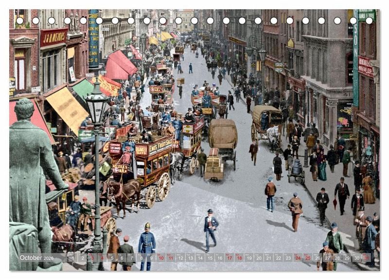 The City of London has a long history, is today a world metropolis and was also colourful and full of life in the years 1890 to 1900. These beautiful, colourfully restored and colourised photographs are intended to give a special insight into the everyday life of the people and well-known places at that time, even if this calendar only contains a small selection of localities. But never has this old time been so vivid. A time travel in pictures.
