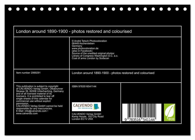 QUALITY - High-quality photo calendar with 12 beautiful images on light-resistant paper, robust spiral binding.SUSTAINABLE - Significant waste reduction due to print-on-demand production, environmentally friendly FSC-certified paper, produced locally, climate-conscious logistical processes.PERFECT GIFT - calendars for friends and family, for children, all ages and all occasions, from Christmas to birthdays and everything in between.LOTS OF CHOICE - Wall calendars in different sizes (DIN A4 and DIN A3), for any topic and personal taste, featuring photography, painting and illustrations.The historical London around the year 1890 to 1900 comes to life in vivid colours. von Autor(in): André Tetsch