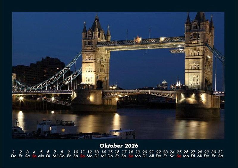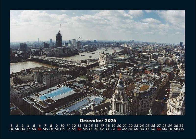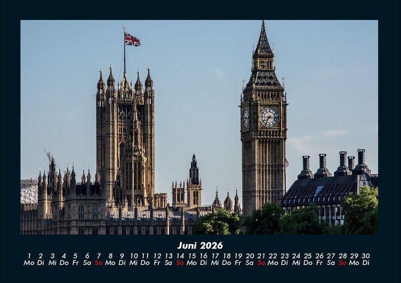 London - Impressionen 2026 Motivkalender DIN A4 Dieser Kalender zeigt Londons schönste Ecken und Sehenswürdigkeiten. Von Big Ben bis Tower Bridge ist alles dabei. Vero-Kalender erhalten Sie mit Motiven aus den verschiedensten Themenbereichen wie Natur, Blumen und Landschaft, Tierwelt, Architektur, Reise und Urlaub, Technik, Automobil und Eisenbahn, Emotionen, Sport und Musik. Gedruckt werden die Monats-Kalender aus dem Vero Verlag auf hochwertigem Kalenderbogen in Premium-Qualität und verschiedenen Größen. Die Vielfältigkeit der Motive unserer Foto-Kalender ist dank der Zusammenarbeit mit kreativen Fotografen möglich.