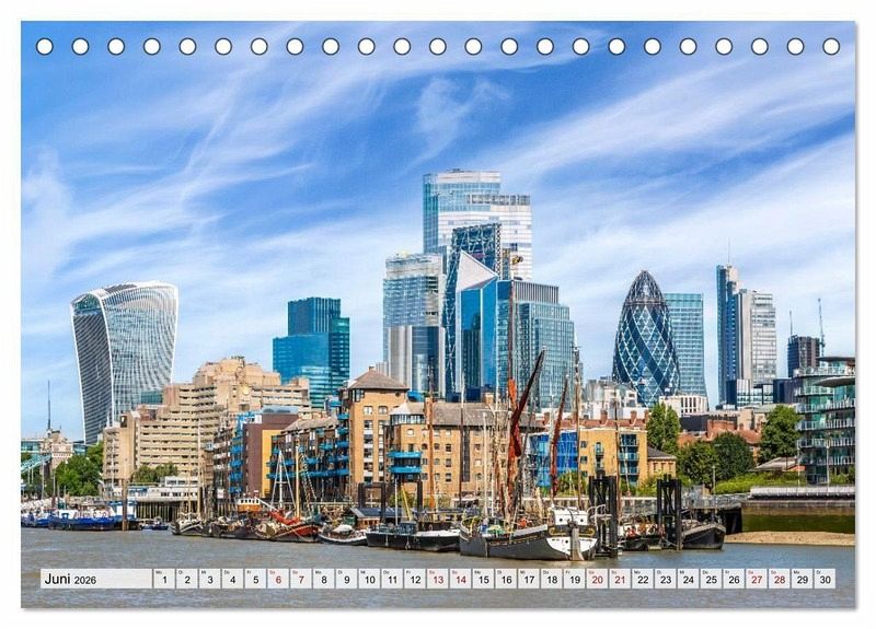 Juni: Moderne Skyline der City of London mit maritimem Flair