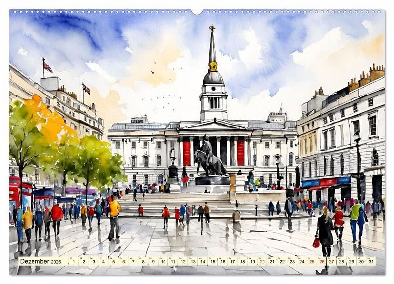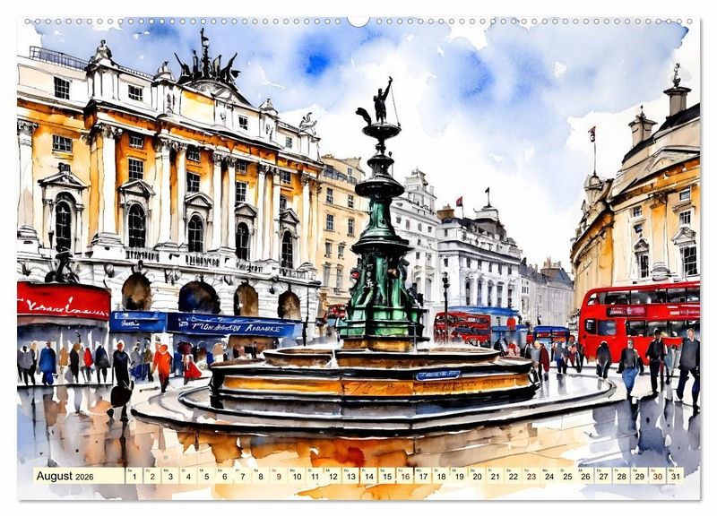 London ist die Hauptstadt des Vereinigten Königreichs und eine der größten und vielfältigsten Städte Europas. Die Stadt erstreckt sich über eine Fläche von rund 1.572 Quadratkilometern und beherbergt eine Bevölkerung von über 8 Millionen Menschen. London ist bekannt für seine beeindruckende Architektur, darunter historische Gebäude wie den Tower of London und das Parlamentsgebäude mit dem berühmten Uhrenturm Big Ben. London ist eine faszinierende und lebendige Stadt, die für ihre Vielfalt, Geschichte und kulturelle Bedeutung weltweit bekannt ist. Ihre bekanntesten Sehenswürdigkeiten werden in zauberhaften KI-generierten Aquarellen vorgestellt.