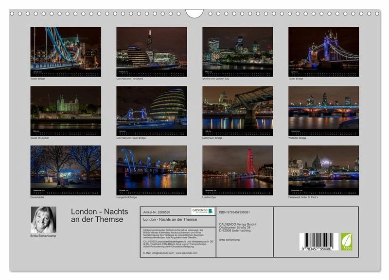 QUALITÄT - Hochwertiger Fotokalender mit 12 wunderschönen Motiven auf lichtbeständigem Bilderdruckpapier, robuste Spiralbindung mit Aufhängebügel.NACHHALTIG - deutliche Abfallreduzierung durch bedarfsgerechte Einzelstückfertigung, umweltfreundliches FSC-zertifiziertes Papier, Produktion in Deutschland, klimabewusste Logistik.PERFEKTES GESCHENK - Kalender für Freunde und Familie, für Kinder und Erwachsene, jung und alt, zu Weihnachten, Geburtstag oder zwischendurch.VIELFALT - Bildkalender in verschiedenen Formaten, z.B. DIN A5, DIN A4, DIN A3 sowie DIN A2. Ob Naturmotiv, Gemälde oder Fotos, ideal für ein persönliches Wohlfühlambiente.Abendliche Wanderung in London von der Tower Bridge bis zur Westminster Bridge von Autor(in): Britta Berkenkamp