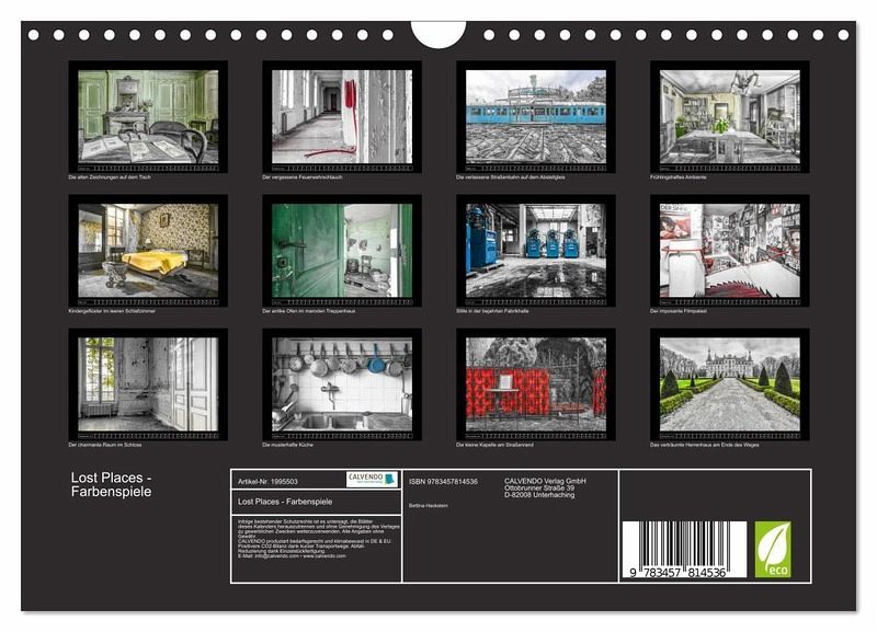 Lost Places, mystisch und geheimnisvoll. Orte im Verfall und dennoch strahlen sie innere Ruhe und die vergangene Schönheit aus, wenn man durch die Räume wandelt. Man fühlt sich in die vergangene Zeit versetzt und kann sich vorstellen, wie in den Räumen gelebt wurde, wenn man die Augen schließt. Stimmengewirr vernehmen, Maschinen hören, dass pulsierende Leben von damals spüren und die vorbeihuschenden Gedanken wahrnehmen über das wieso, weshalb und warum. Es ist die Neugier, die einem an diese Orte zieht und die ein Hauch von Abenteuer, Geschichte und Mystik vermittelt. Auch nach Jahrzehnten strahlen Räume, Hallen, Treppenhäuser, Fenster, Türen, kleine Details und sogar Tapeten an Wände ihre eigene majestätische Ruhe aus. Beeindruckende Fotografien von Bettina Hackstein, entführen sie in eine vergangene und mystische Zeit. Einzigartige Motive, sei es abblätternde, verfallene oder mit Graffiti geschmückte Wände und Tapeten in Häuser und Hallen, dort ein Detail verhüllt in Spinnweben oder Räume und Fenster die sich die Natur zurückerobert hat. Die Fotografin Bettina Hackstein präsentiert wundervolle Lost Places Kalender und mehr und versetzt sie in eine atemberaubende und mystische Vergangenheit.