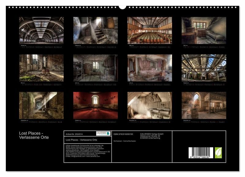 PREMIUM-LINIE - Brillanter Fotokalender mit 12 wunderschönen Motiven, Kunstdruck in Hochglanz in Museumsqualität.QUALITÄT - edle Materialien, stabile Rückwand mit 2 innovativen Einstecktaschen für eine optimale Präsentation an der Wand.NACHHALTIG - deutliche Abfallreduzierung durch bedarfsgerechte Einzelstückfertigung, umweltfreundliches FSC-zertifiziertes Papier, Produktion in Deutschland, klimabewusste Logistik.PERFEKTES GESCHENK - Kalender für Freunde und Familie, für Kinder und Erwachsene, jung und alt, zu Weihnachten, Geburtstag oder zwischendurch.Verlassene Orte, Schönheit des Verfalls von Autor(in): Sichtweisen