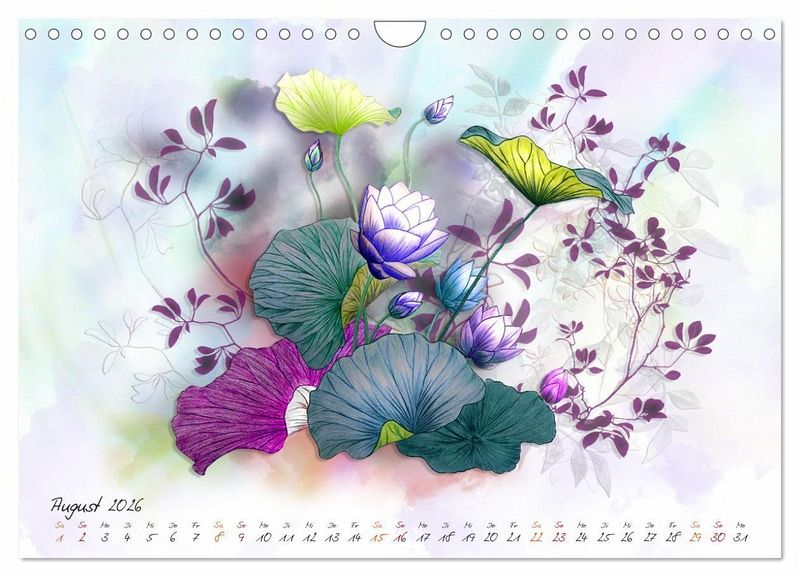 Ein Kalender mit Zeichnungen von Lotusblüten ist ein dekoratives und symbolisches Objekt. Lotusblüte ist mehr als nur eine Blume. Es ist ihre Sinnlichkeit, die Schönheit und der Stolz, das uns fasziniert. Lassen Sie sich von der Magie der Lotusblüten Bilder gefangen nehmen, die alle Herzen erobern und die schönen Blumen unvergesslich machen.