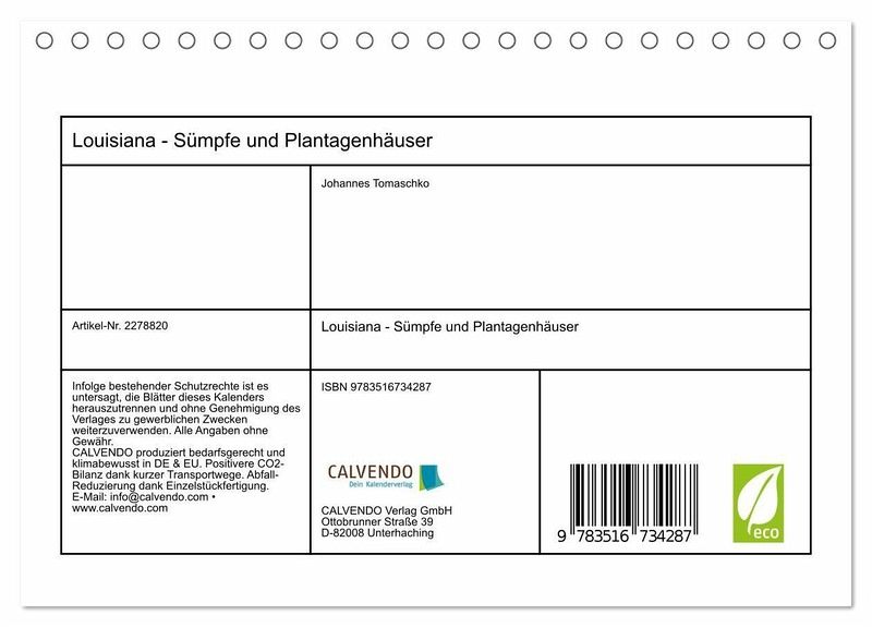 QUALITÄT - Hochwertiger Fotokalender mit 12 wunderschönen Motiven auf lichtbeständigem Bilderdruckpapier, robuste Spiralbindung.NACHHALTIG - deutliche Abfallreduzierung durch bedarfsgerechte Einzelstückfertigung, umweltfreundliches FSC-zertifiziertes Papier, Produktion in Deutschland, klimabewusste Logistik.PERFEKTES GESCHENK - Kalender für Freunde und Familie, für Kinder und Erwachsene, jung und alt, zu Weihnachten, Geburtstag oder zwischendurch.VIELFALT - Bildkalender in verschiedenen Formaten, z.B. DIN A5, DIN A4, DIN A3 sowie DIN A2. Ob Naturmotiv, Gemälde oder Fotos, ideal für ein persönliches Wohlfühlambiente.Bayous, moosverhangene Eichen, Plantagen von Autor(in): Johannes Tomaschko