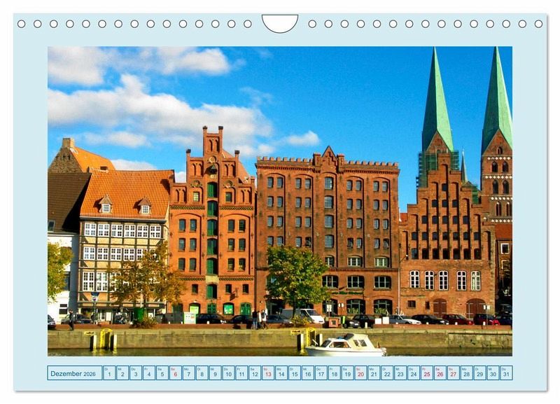 Die Lübecker Altstadt ist eine Insel voller architektonischer Schätze. Der Kalender lädt zu einem Spaziergang entlang der Sehenswürdigkeiten. Hervorragende Bilder zeichnen diese Reise aus.