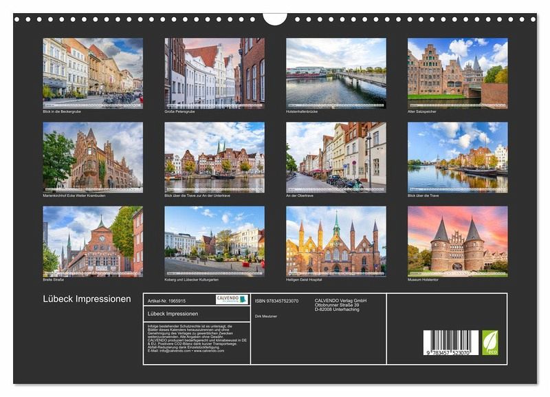 Entdecken Sie die Schönheit der Hansestadt Lübeck das ganze Jahr über mit unserem Wandkalender! Die wundervollen Bilder zeigen die historischen Gebäude, malerischen Gassen und die unvergleichliche Atmosphäre dieser einzigartigen Stadt.