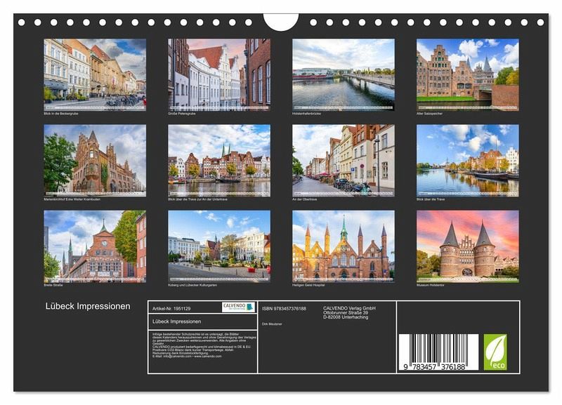 Entdecken Sie die Schönheit der Hansestadt Lübeck das ganze Jahr über mit unserem Wandkalender! Die wundervollen Bilder zeigen die historischen Gebäude, malerischen Gassen und die unvergleichliche Atmosphäre dieser einzigartigen Stadt.